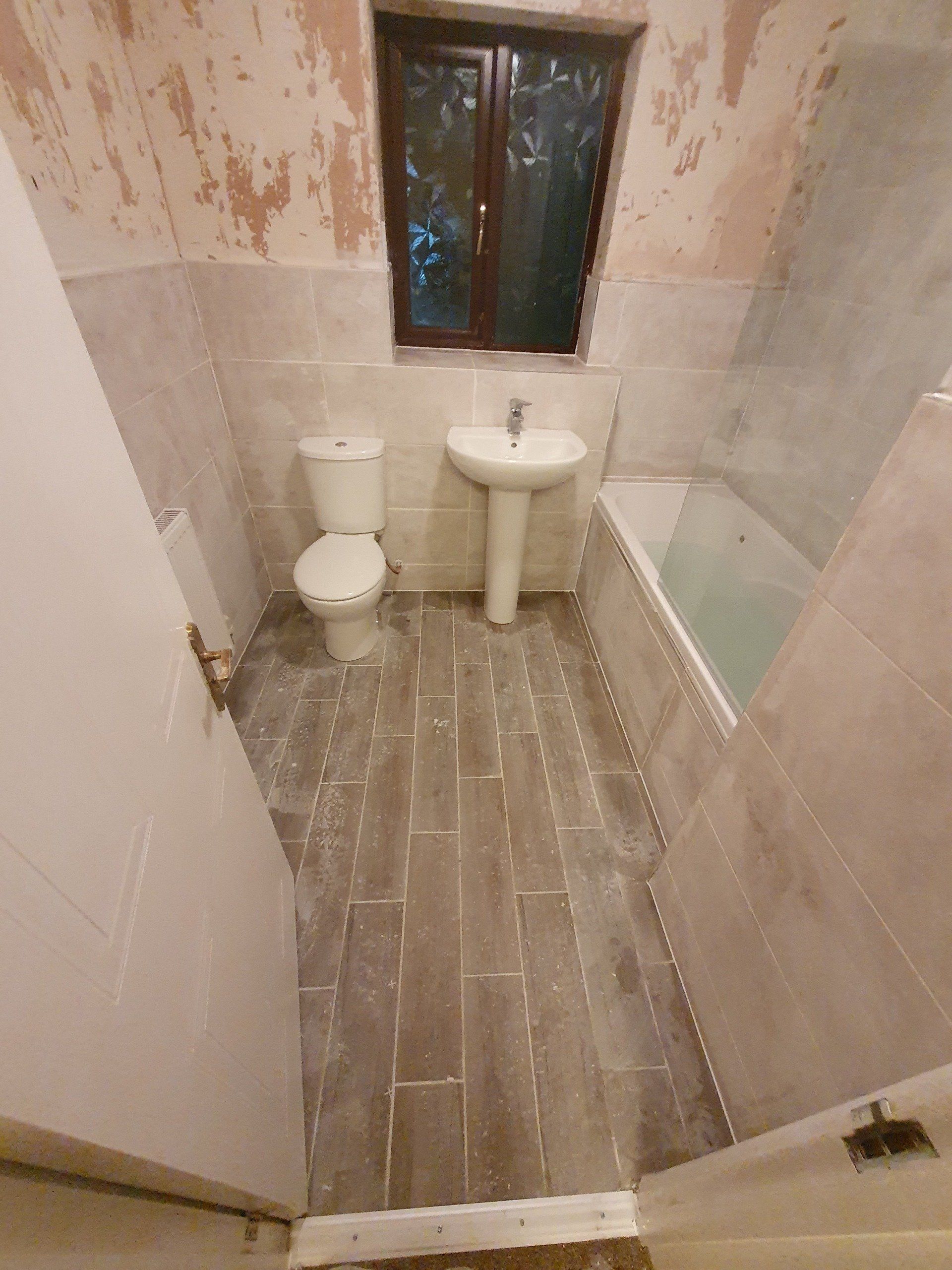 Full bathroom renovation including floor and wall tiles and full suite (image 1)