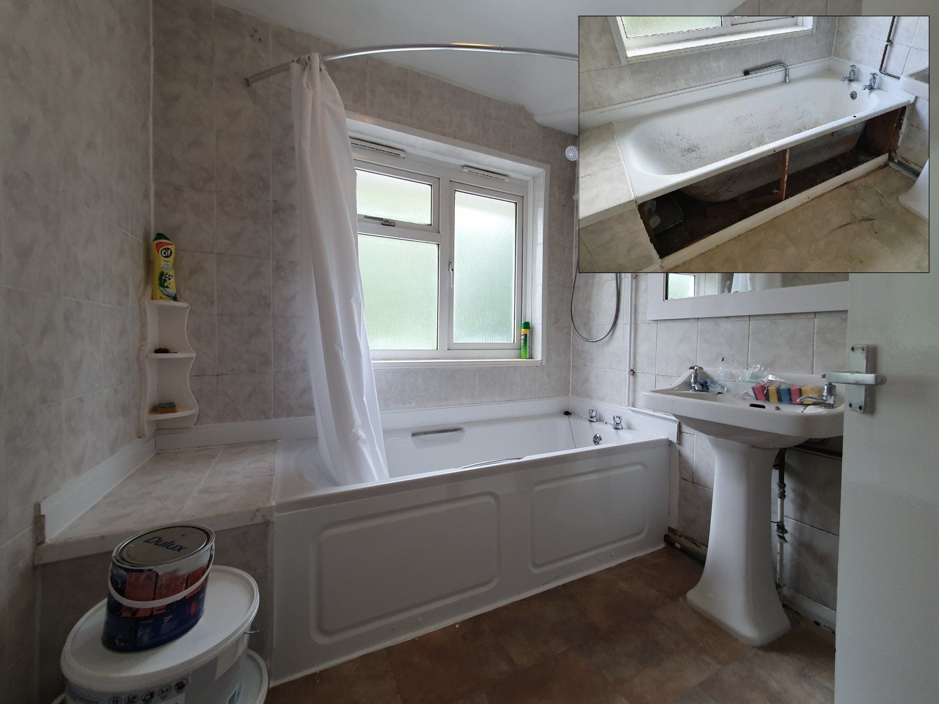 Replaced cast iron bath with new, levelled and fitted securely, and sealed all around